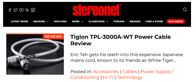 • StereoNET Publishes Review of Our Flagship Cable TPL-3000A-WT